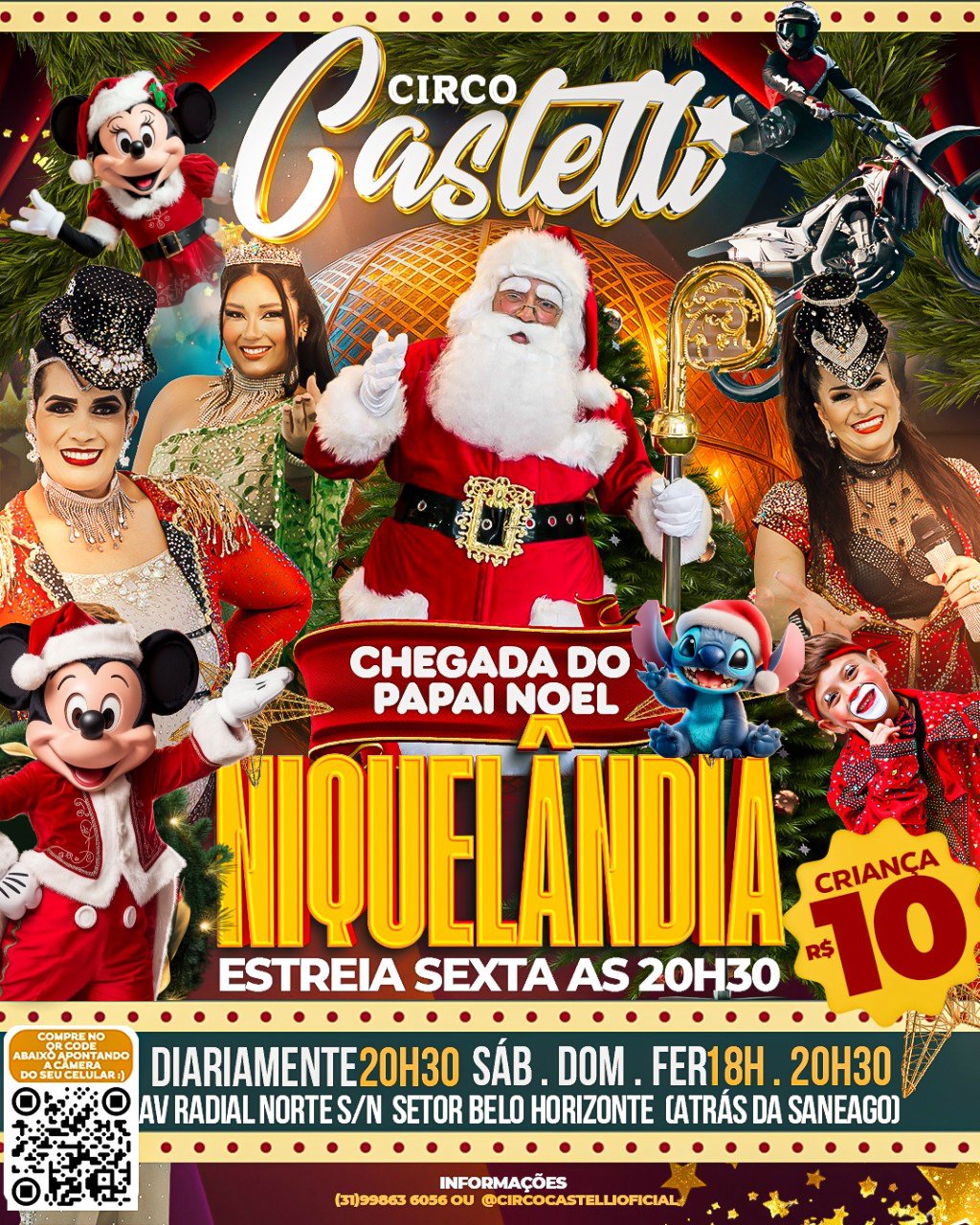 | Ingresso Circo Castelli |Ceres e Rialma – GO | 07/12/2025 – Domingo 2ª Sessão 20h30min | R$ 11,00 – R$ 44,00Price range: R$ 11,00 through R$ 44,00 → Incluso taxa de compra online |